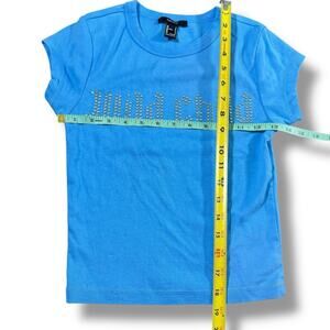 Forever 21 Y2K Rhinestone Baby Tee Women’s Small Blue Wild Child Graphic Mcbling