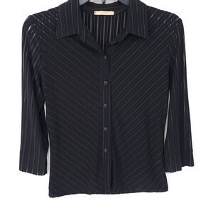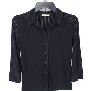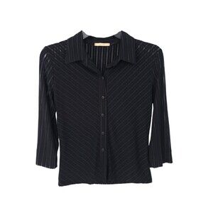 Forever 21 Y2K Top Womens Medium 3/4 Sleeve Stretch Button Sheer Sexy Vintage