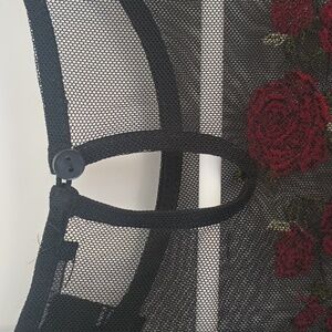 Forever 21 sheer mesh minidress size S. Black with red embroidered roses. Good used condition.