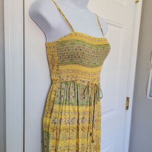 Forever 21 Yellow Green Printed Wide Leg Sleeveless Ruched Top Jumpsuit Size S