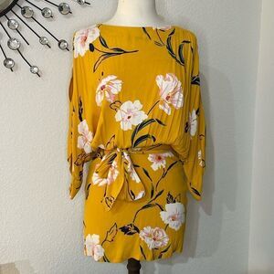 Forever 21 Yellow & Navy Floral Print Regular Fit A Line Dress | size S
