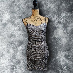 Forever 21 Zebra Print Ruched Bodycon Mini Dress M