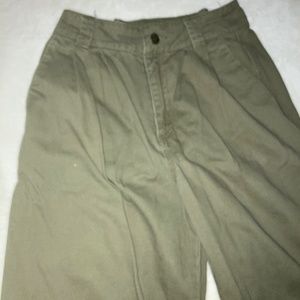 Army green cargo pants, very slim at the waist, which gives an “hourglass” figure!