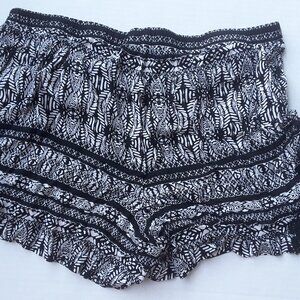 Forever 21 black and white shorts, elastic waistband, lace trim on legs. Preowned in great condition. Waist flat lay 17" (material stretches). Inseam 4".