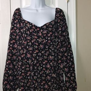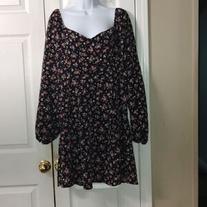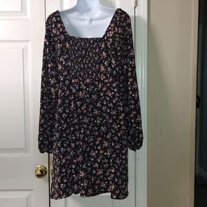 Forever 21 black floral print midi flirty fun party dress Sz 1X NWT