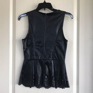Forever 21 black leather peplum top with laser cutouts at the bottom. Zipper in the back.
