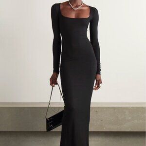 Reminds me so much of the SKIMS long sleeve slip dress (last pic).