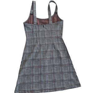 Forever 21 women’s dress size S. Black, white & rust plaid. Straps across the shoulders fitted design. Zipper in the back. Overall length of the dress is 26 inches. 98% polyester 2% spandex, has a little stretch.