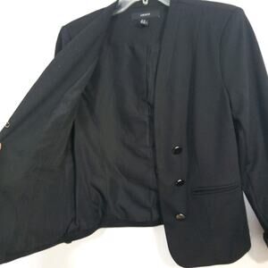 Forever 21 black blazer jacket with mock double row silver button front and mock pockets. Lined and hook and eye closure