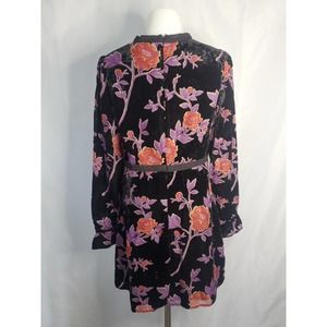 Forever 21 black/multicolor floral velour long sleeve mini dress sz Large