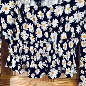 Forever 21 black white daisy flower crop long sleeve peasant cropped shirt top S