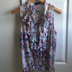 Beautiful button down blouse. Front is ruffled for a dressy look. Can dress up or dress down. Lightly worn.