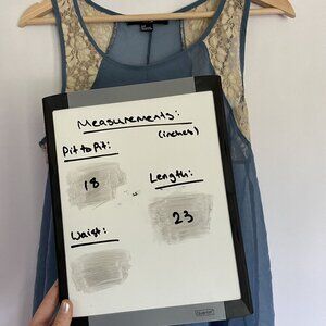 Forever 21 blue and white sheer summer sleeveless top lace detail size small
