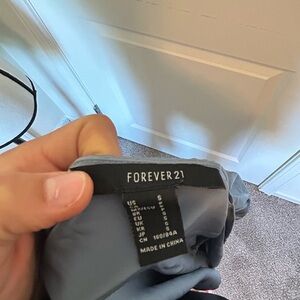 Forever 21 blue silk puffy leave mid sleeve tie front crop top shall