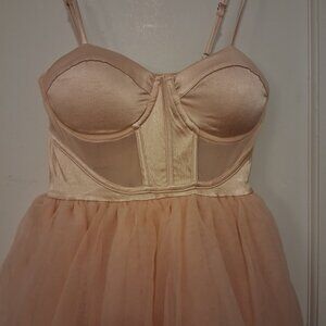 Forever 21 blush pink / peach Satin tiered Tulle Madonna dress midi length S