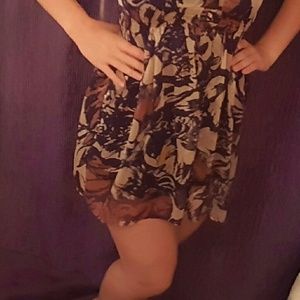 This patterned blue, tan, and yellow dress is the perfect casual outfit for the fall. Excellent condition, just a little shorter than I usually wear (I've worn it with skinny jeans and a sweater)