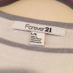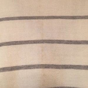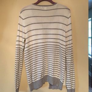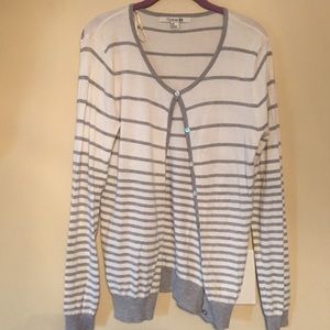 Grey striped cardigan and outline in grey with grey metallic buttons, worn maybe once or twice but in good condition besides the faded stain on the back (4th picture) willing to negotiate!