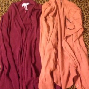 4 cardigans, 2 navy blue (1 with knit sleeves), one burgundy and on taupe. All from forever 21 except burgundy from Charlotte Russe.
