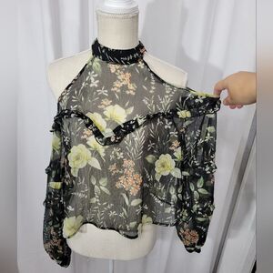 Forever 21 cold shoulder floral blouse
