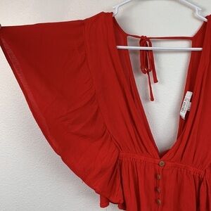 Forever 21 crinkle gauze crop top, peplum waist blouse with tiny buttons closure, elastic waist, deep plunging V neck with ruffled short sleeve and tie behind back to keep the shoulders from falling off!