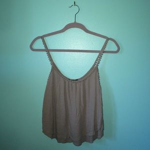 Super cute for the summer. Flowy top that DOES NOT hang really low like a lot of the crop tanks. Worn before but in great condition.