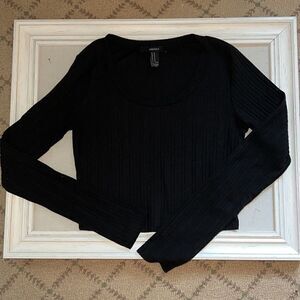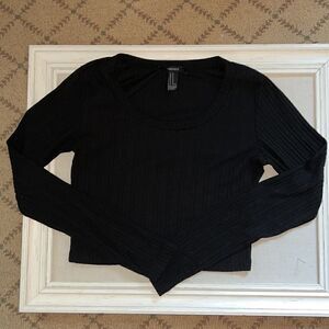 Forever 21 black ribbed knit crop top w long sleeves M. Excellent condition, gently worn. No rips stains or tears. Slight pilling on sleeves. Not noticeable.