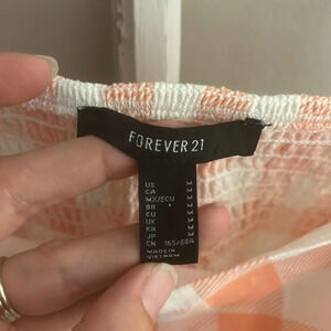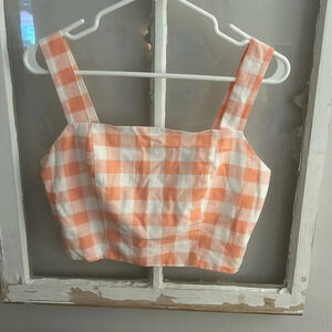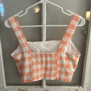 Forever 21 cropped smocked sleeveless top pink white gingham size M