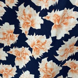 Navy blue with floral print. Back is not printed. Zipper in back. Size small. Approx 17 inches long. Smoke free owner and home.