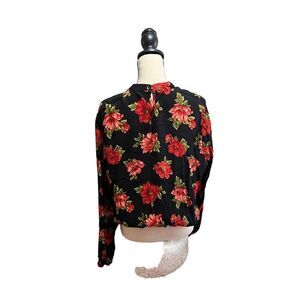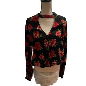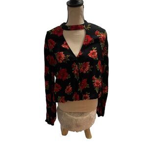 Forever 21 floral crop top with long sleeves deep V neck and fun top detail good