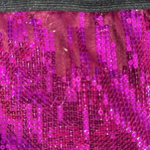 Forever 21 hot pink sequin elastic black waistband mini skirt, size large. Also fits a medium. Front sequins in good shape. Back sequins around the waistband are missing as shown in 2nd photo. Masked well due to color of material. A hi low top or sweater would take care of this.