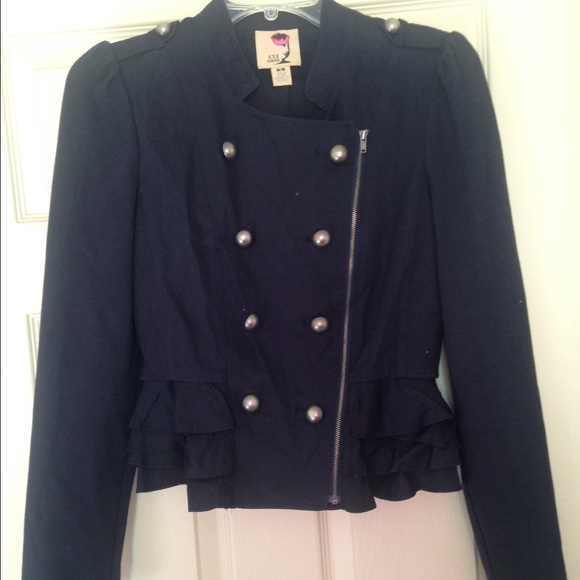 Structured navy blue Forever 21 button jacket, zips close