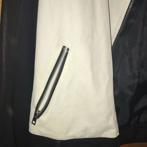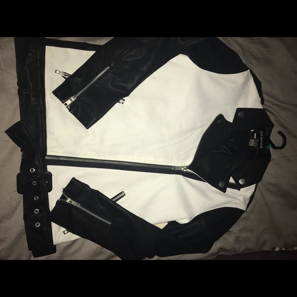 Trendy Black and white jacket from forever 21 never worn silver zipper pockets and zippers on the sleeve. Belt around the bottom of jacket- can be worn without belt!