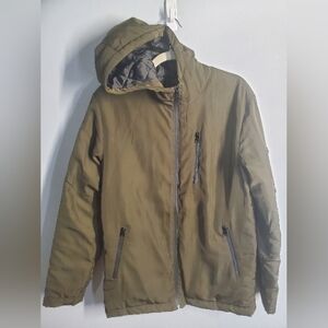 Forever 21 jacket men's size XS X-small Green Silky Material Zippered Pockets typical Pockets zippered also chest pocket and left arm zip pocket