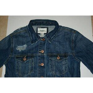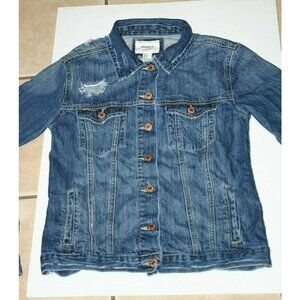 Forever 21 jean jacket womens small distressed denim blue button up