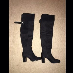 These are faux suede knee high boots that would look amazing with a dress. These boots are new and would be perfect for the fall weather that is coming!