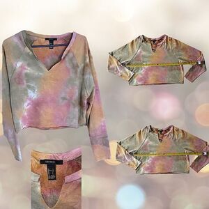 Forever 21 l Tie-dye l Pink Green Orange l Long sleeve l Cropped & Raw l L l EUC