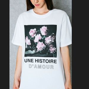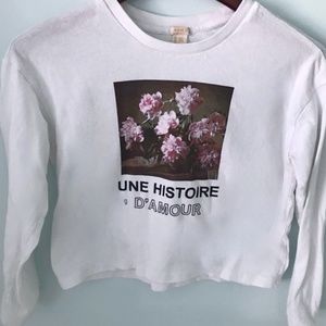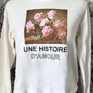 In good condition, with no defects. Beautiful floral print with legends. Long sleeve. Off white color.