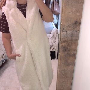 Forever 21 medium ivory fuzzy teddy bear sleeveless duster jacket