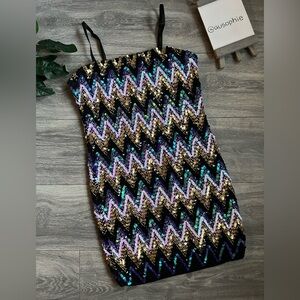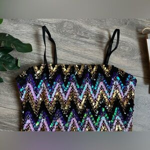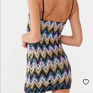 Forever 21 metallic chevron stripe sequin smocked bodycon mini dress. Size L