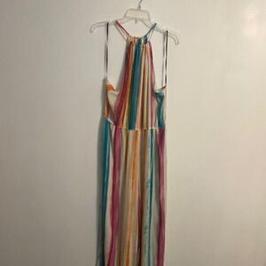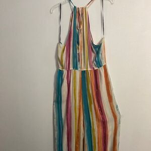 Forever 21 multi-color stripe spaghetti strap wide leg jumpsuit, size 2X
