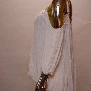 Smocked top with off the shoulder straps, cut-out sleeves, elastic wrists bands. Lace detail at front neckline.