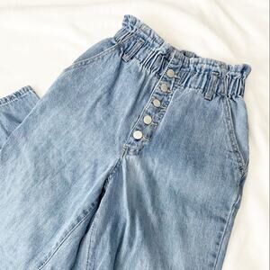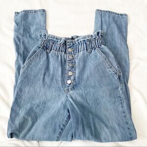 Forever 21 paper bag jeans blue denim high waist boyfriend size 25