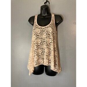 Forever 21 Pink/Cream Asymmetrical Lace Tank Top
