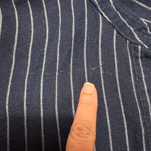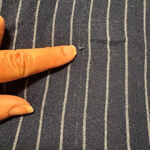 Cute and very flattering cut. Soft rayon fabric - drapes beautifully. Several snags throughout but doesn’t really detract. Has belt loops (no belt). Sold as is. Size small.
