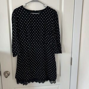 Forever 21 polka dot dress black white 3/4 sleeves lace hem detail M|L