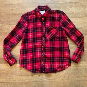 Forever 21 red and black long sleeve button down shirt top size small S b24