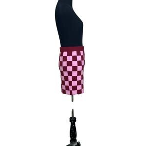 Forever 21 red pink checkers pull on knit mini skirt size M