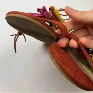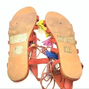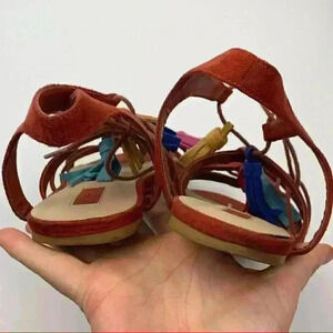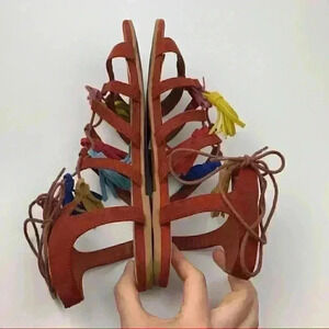 Forever 21 womens sandals size 8 39 burnt Orange faux suede tassel pom poms gladiator festival bright