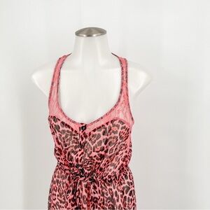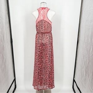 Forever 21 sheer pink leopard maxi dress w/ lace draw string waist