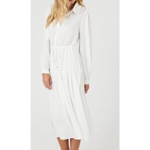 Forever 21 sheer white tie-front shirt long midi dress - large